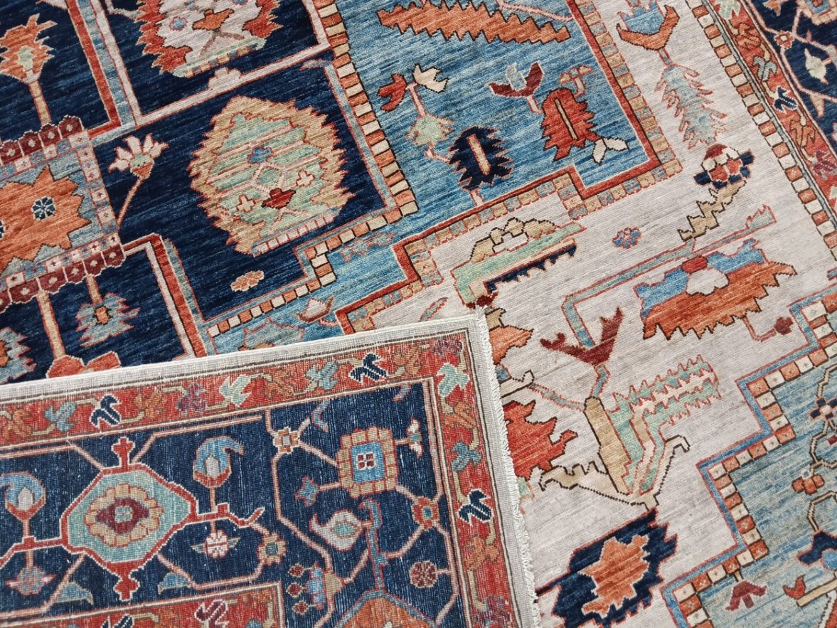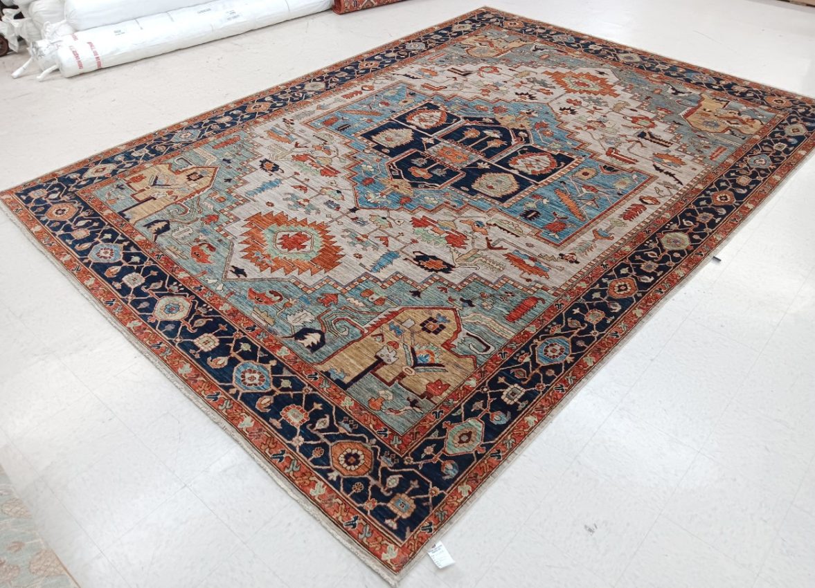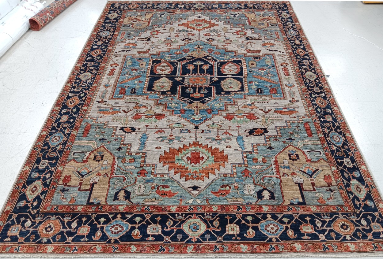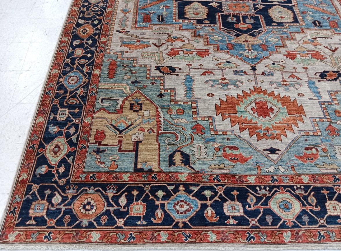 10′ x 13’11” Pakistan Heriz – 123448 Rug#:123448Size:10′ x 13’11”Design: HerizDesign#: PakistaniField Color: IvoryBorder Color:NavyContent:100% Wool PileOrigin: PakistanSize Category:10×14 – 10 x14 rugs category Traditional Collection tag 10x14 rugs date October 27, 2023