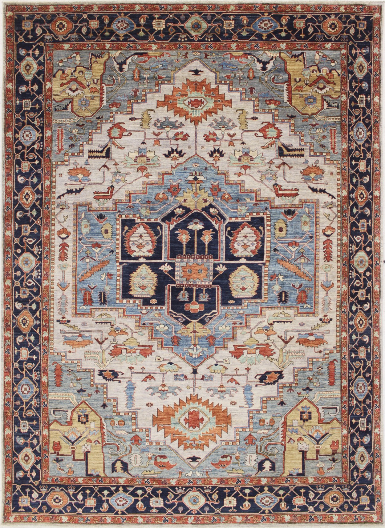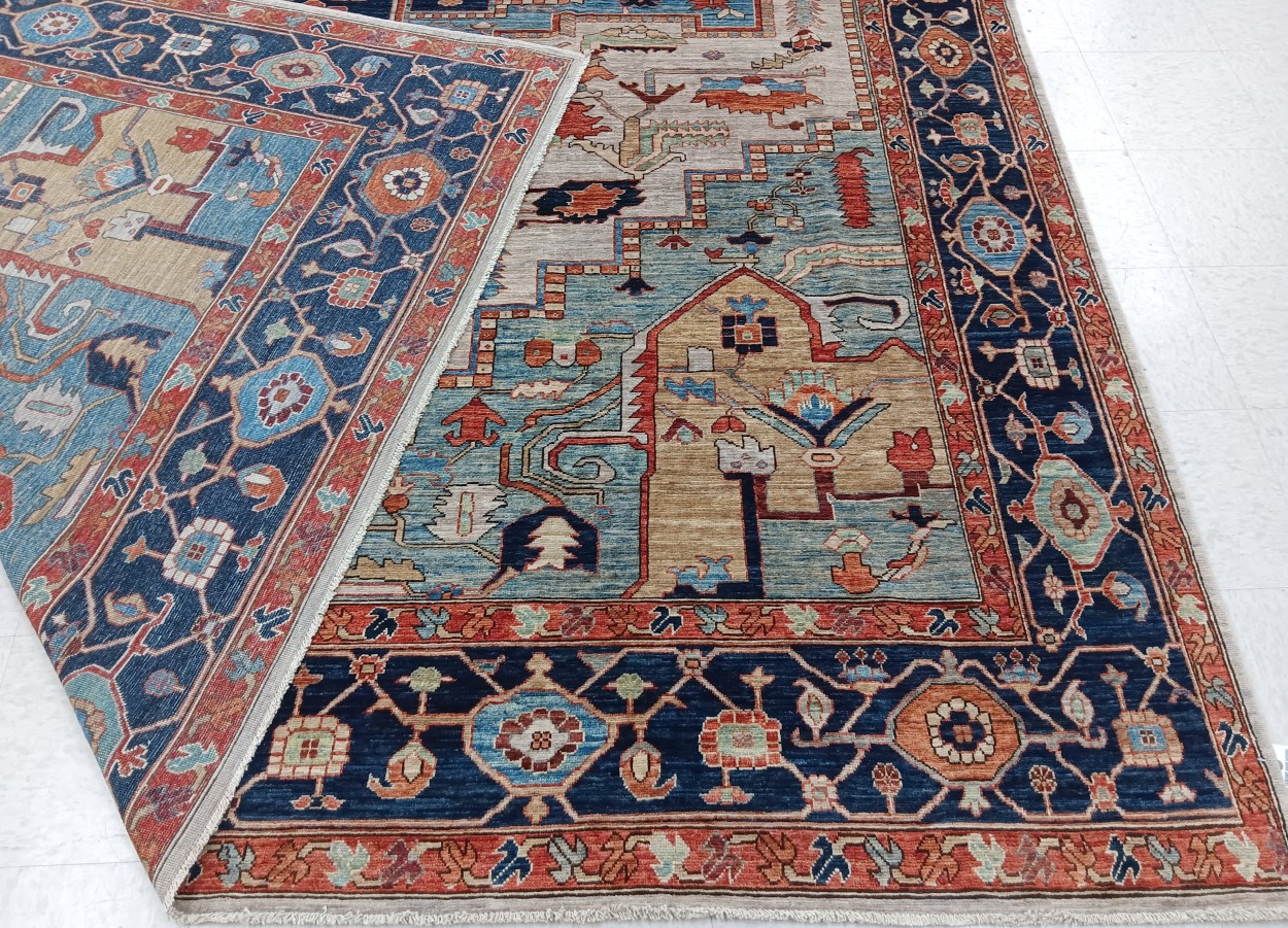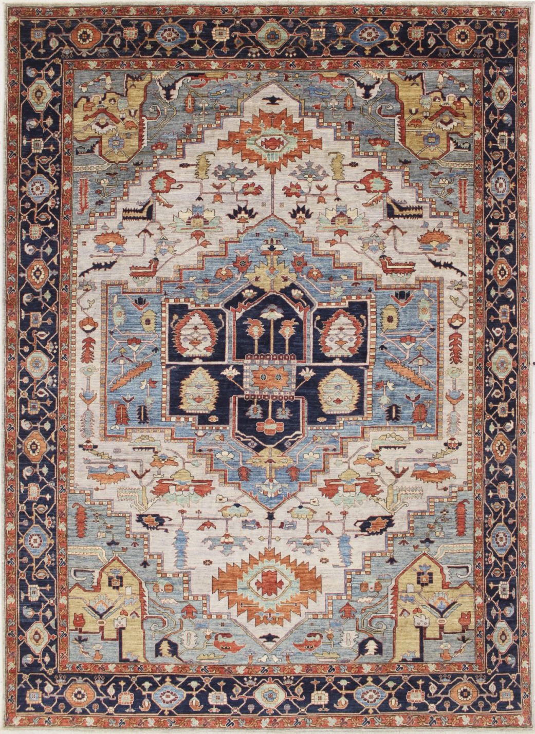 10′ x 13’11” Pakistan Heriz – 123448 Rug#:123448Size:10′ x 13’11”Design: HerizDesign#: PakistaniField Color: IvoryBorder Color:NavyContent:100% Wool PileOrigin: PakistanSize Category:10×14 – 10 x14 rugs category Traditional Collection tag 10x14 rugs date October 27, 2023