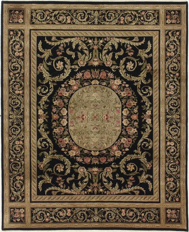 10’1” x 8’4” Savonnerie 921 – 104942 Rug#:104942Size:8’4” x 10’1”Design: SavonnerieDesign#: 921Color: Black / BlackContent:100% Wool PileOrigin: IndiaSize Category:8×10 category Traditional Collection date January 12, 2023
