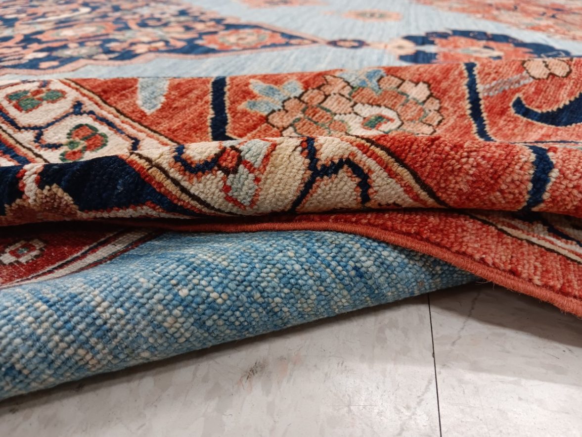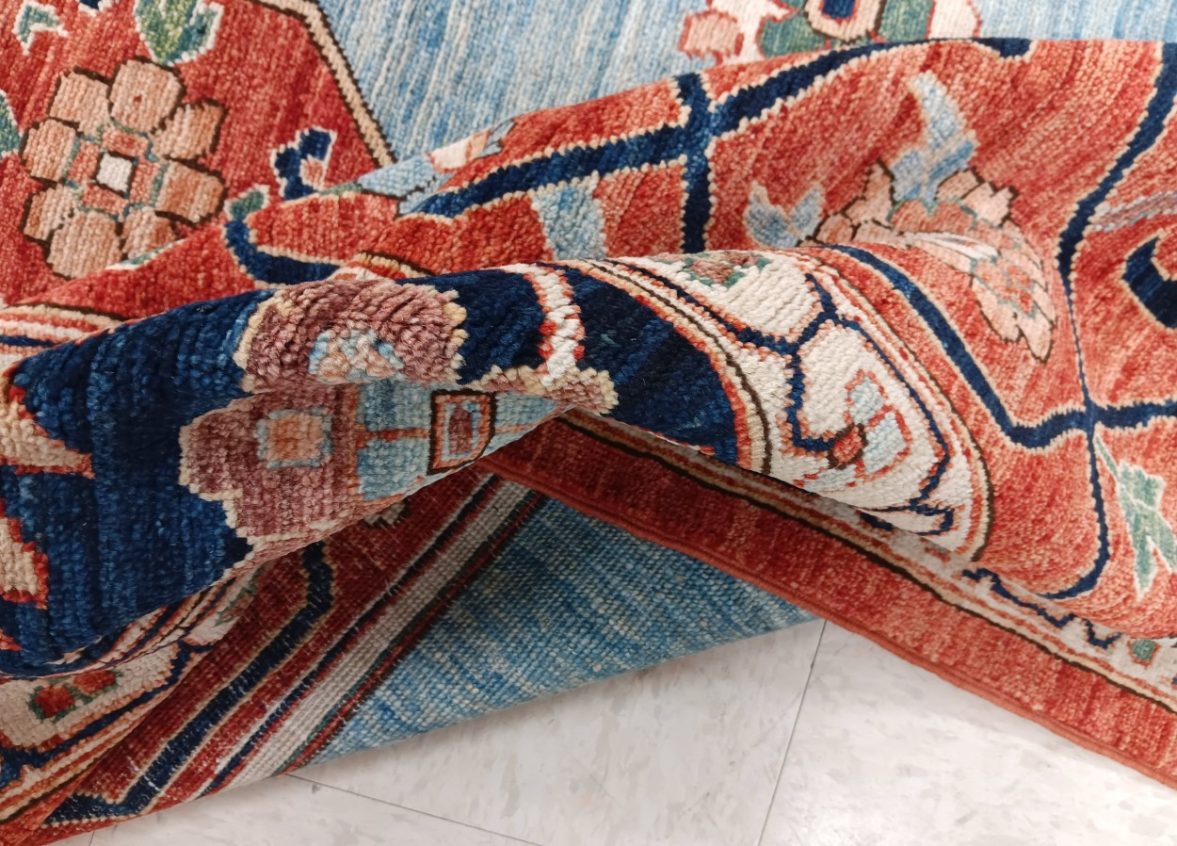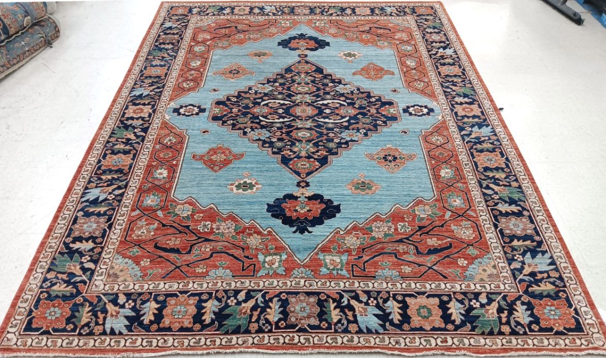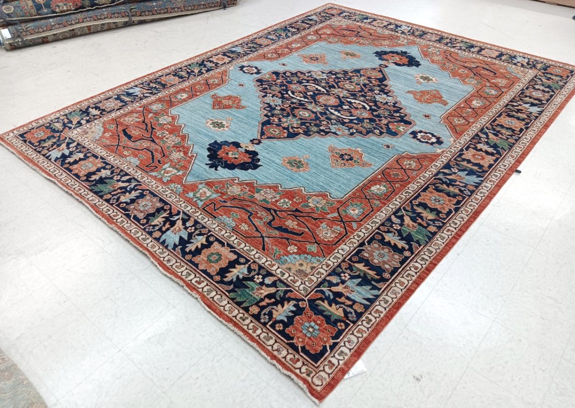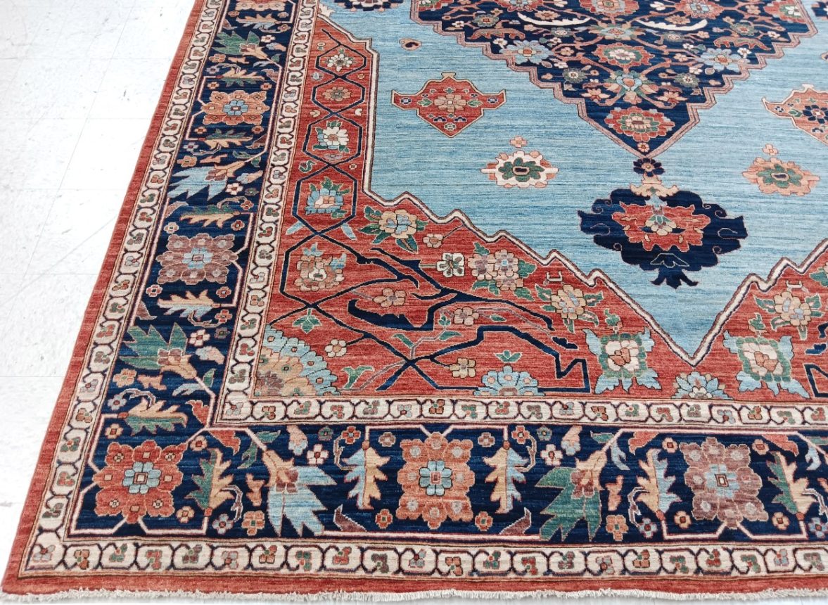 10’2” x 13’8” Pakistan Heriz – 123391 Rug#:123391Size:10’2” x 13’8”Design: HerizDesign#: PakistaniField Color: Light BlueBorder Color:NavyContent:100% Wool PileOrigin: PakistanSize Category:10×14 10 x 14 rugs category Traditional Collection tag 10x14 rugs date October 19, 2023