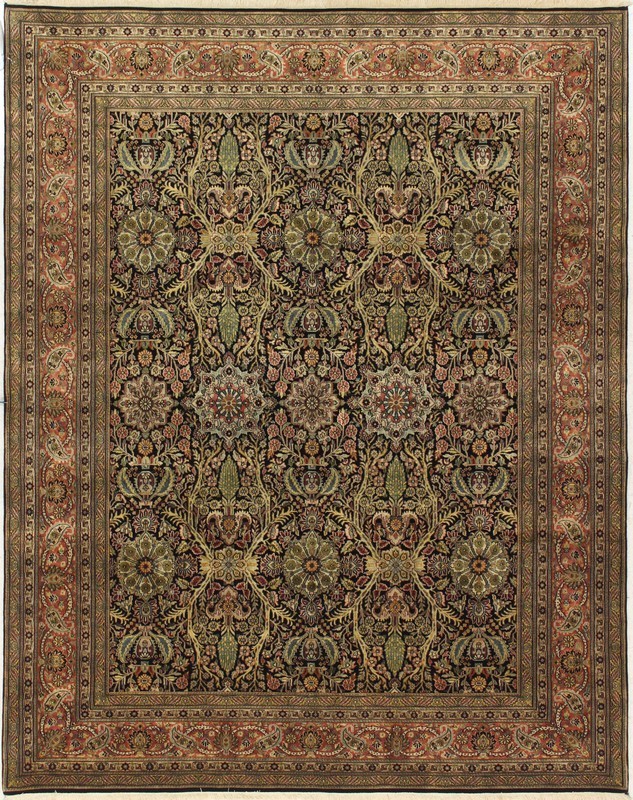 10’3” x 8’2” Tabriz 4013 – 109180 Rug#:109180Size:8’2” x 10’3”Design: TabrizDesign#: 4013Color: Black / RoseContent:100% Wool PileOrigin: IndiaSize Category:8×10 category Traditional Collection date January 12, 2023
