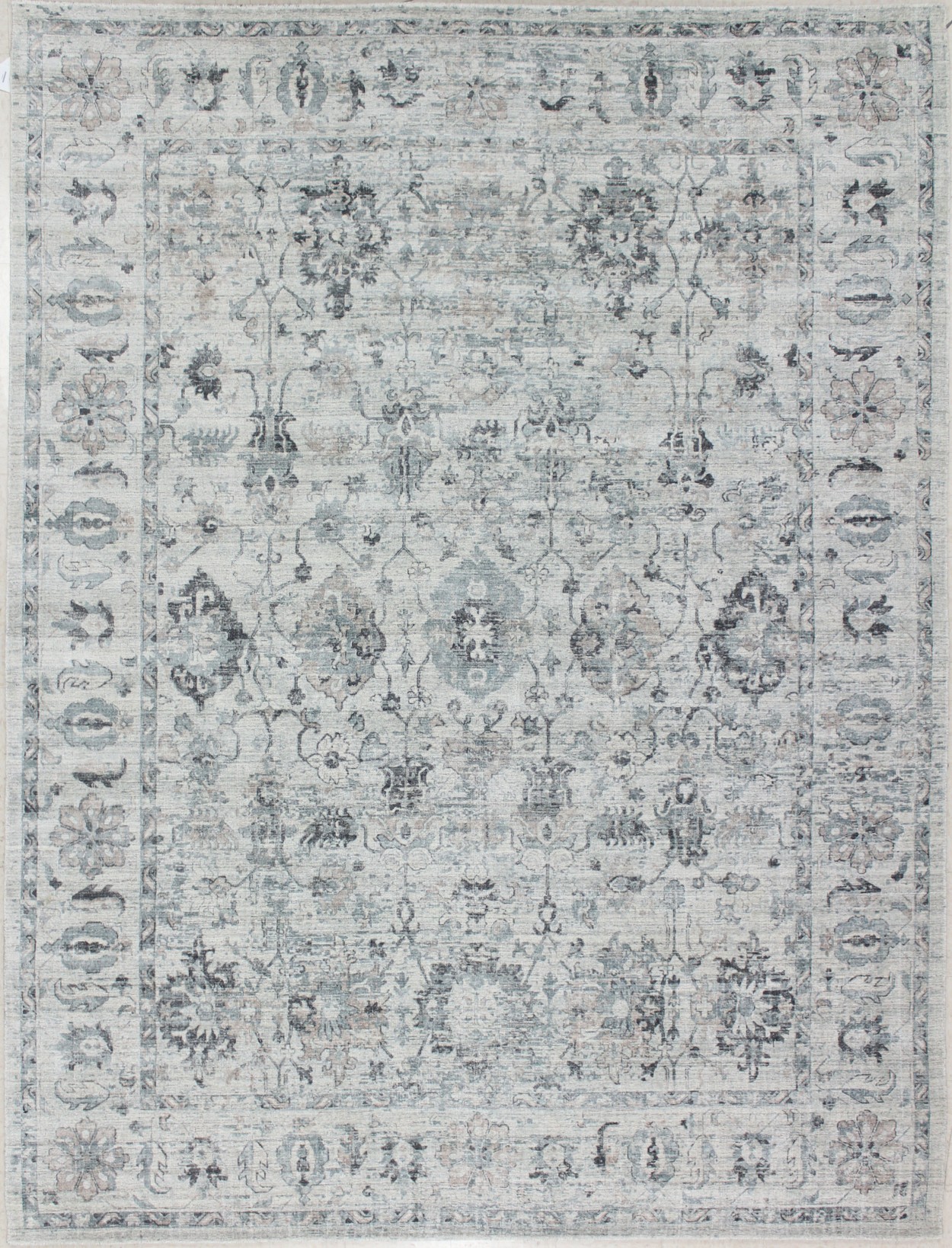 11’10” x 8’11” Modern 29091 – 122307 Rug#:122307Size:8’11” x 11’10”Design: Modern Design#: 29091Field Color: SilverBorder Color:AguaContent:Wool & Bamboo SilkOrigin: IndiaSize Category:9 x 12 rugs category Transitional Collection date June 21, 2023