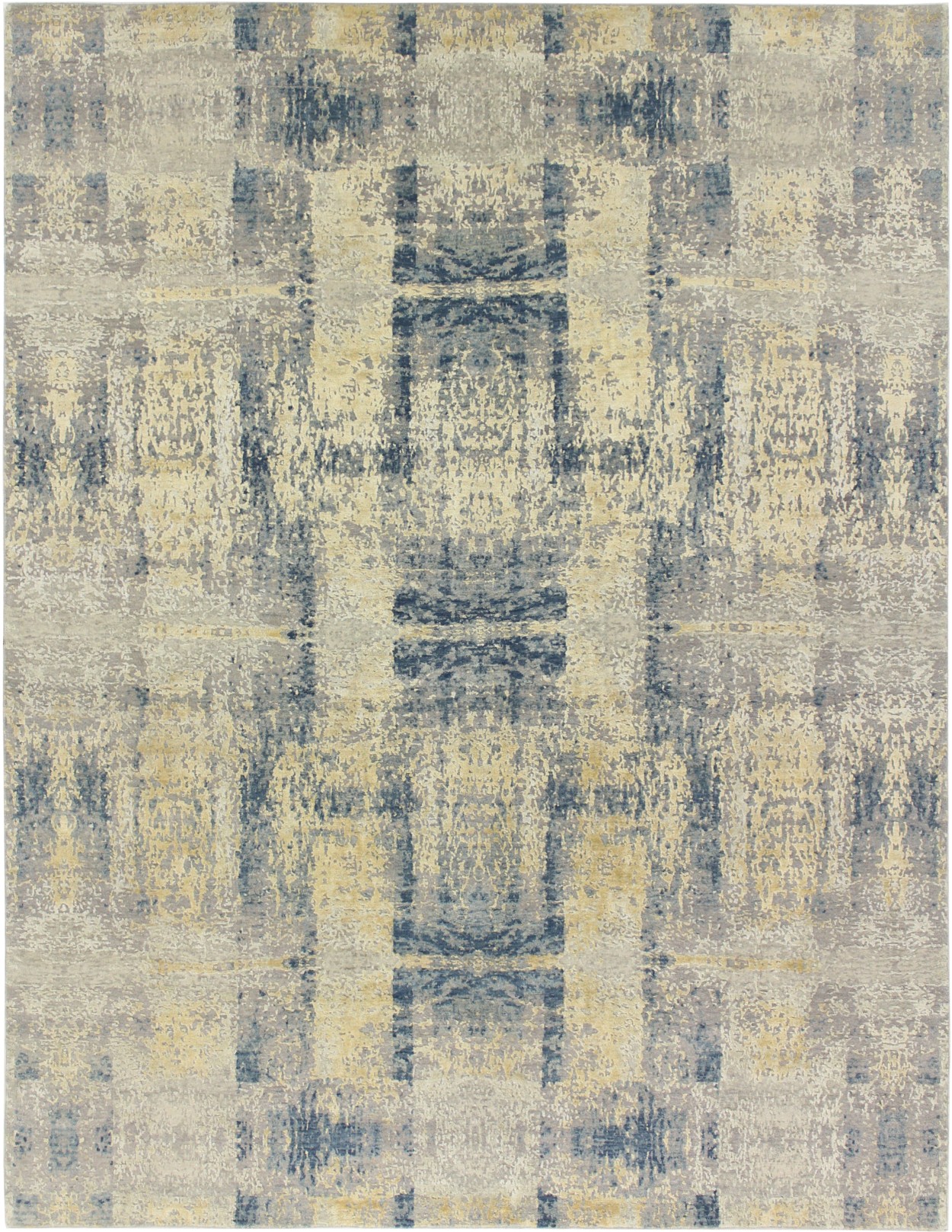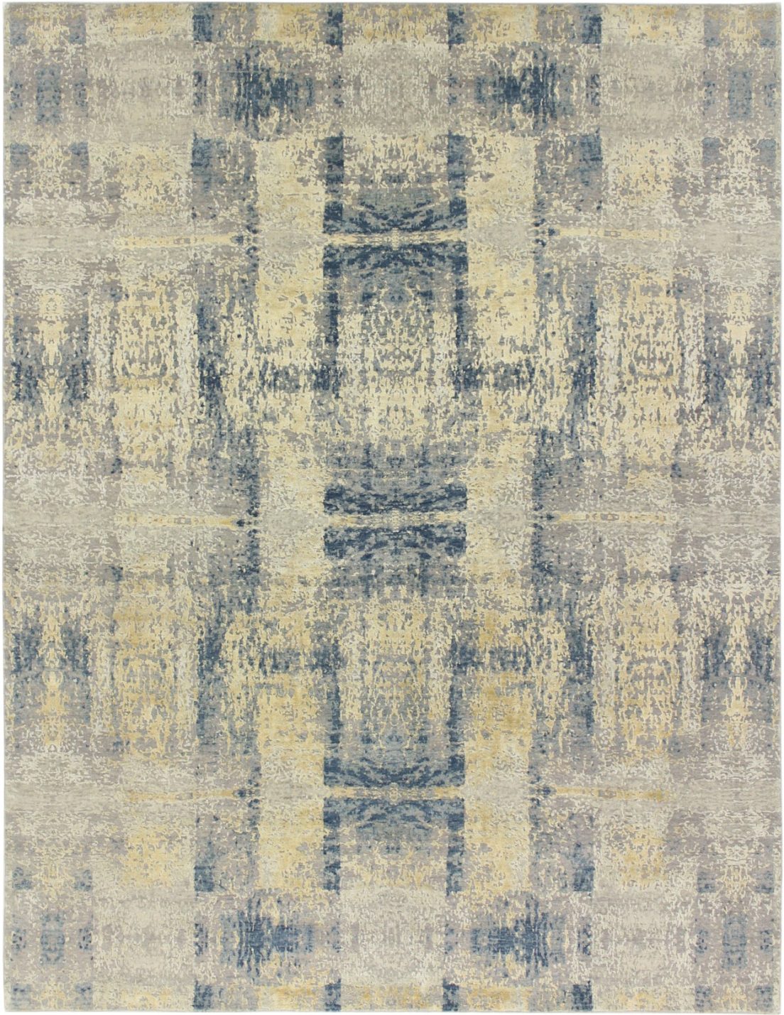 11’10” x 9’1” Modern Pt-2 – 122246 Rug#:122246Size:9’1” x 11’10”Design: ModernDesign#: PT-2Field Color: SilverBorder Color:BlueContent:Wool & Bamboo SilkOrigin: IndiaSize Category:9 x 12 rugs category Modern Collection date June 21, 2023