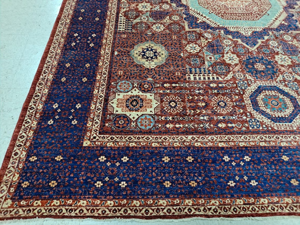 11’11” x 14’7” Pakistan Mamluk – 122178 Rug#:122178Size:11’11” x 14’7”Design: Mamluk Design#: PakistaniField Color: RedBorder Color:NavyContent:100% Wool PileOrigin: PakistanSize Category:12×15 – 12 x 15 Rugs category Traditional Collection tag 12x15 oversized rugs date January 24, 2024
