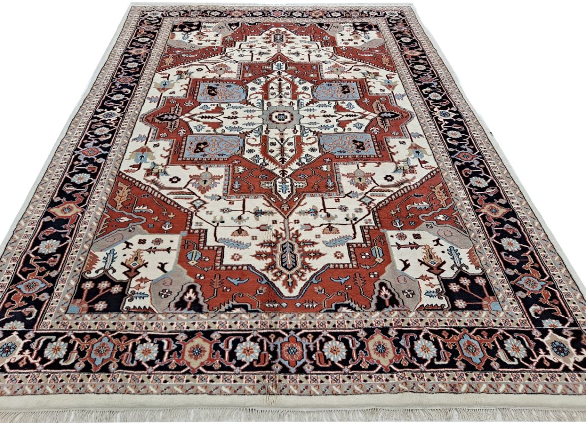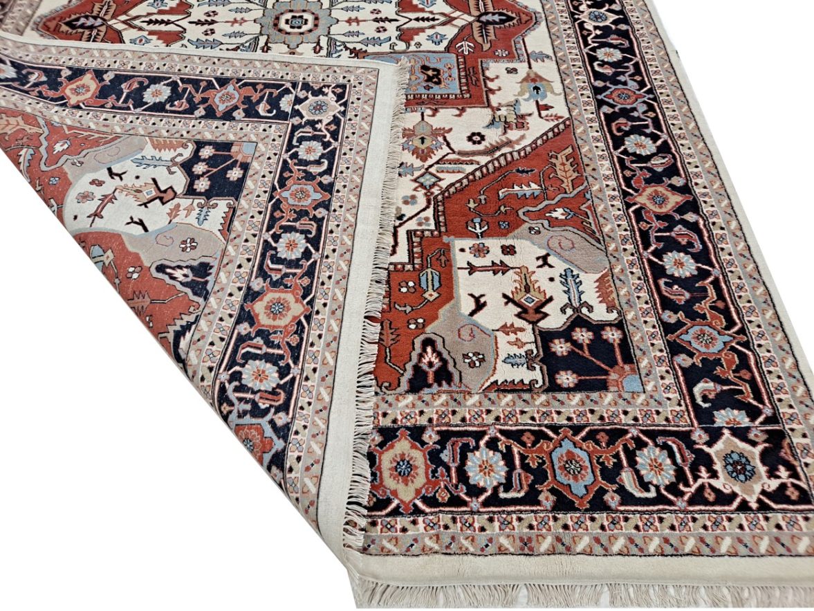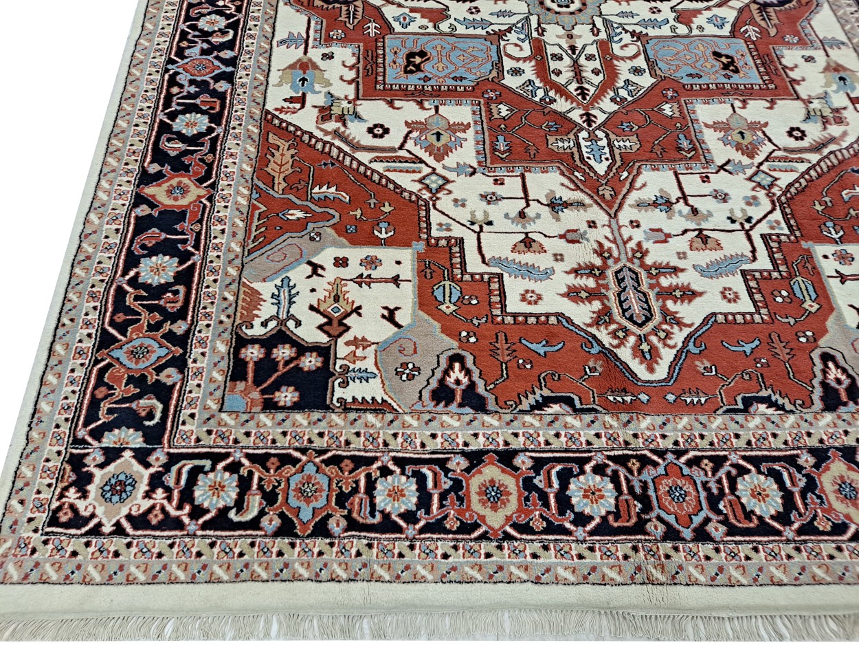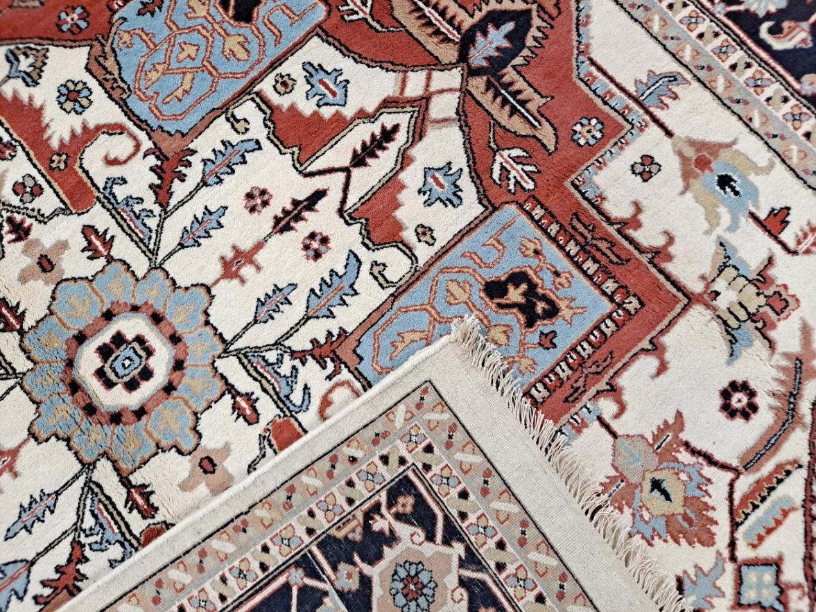 11’6” x 8’5” Heriz 1011 – 22135 Rug#:22135Size:8’5” x 11’6”Design: HerizDesign#: 1011Field Color: IvoryBorder Color:NavyContent:100% Wool PileOrigin: IndiaSize Category:9×12 – 9 x 12 rugs category Traditional Collection tag 9x12 rugs date June 23, 2023