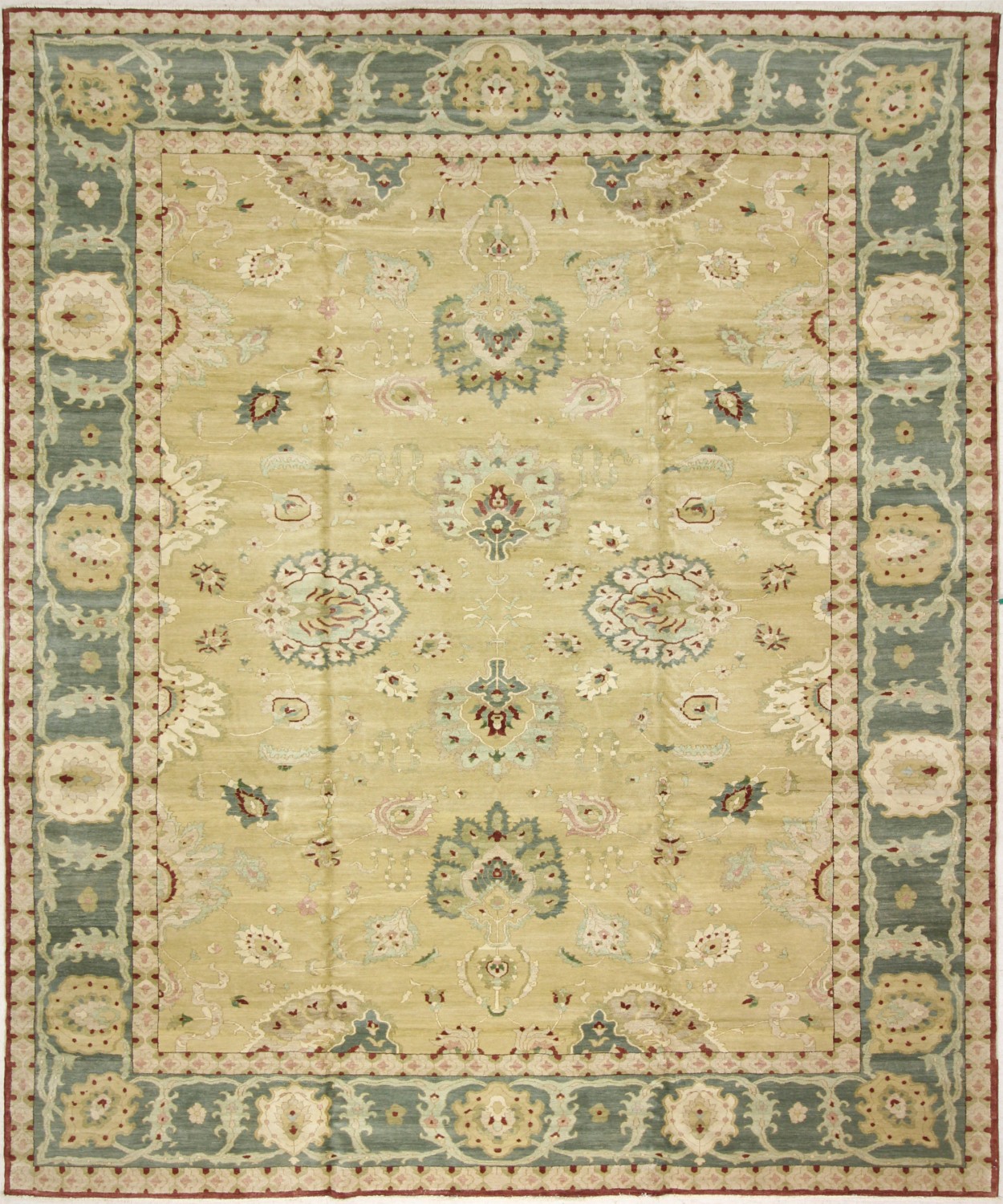 11’9” x 14’2” Egyptian Agra – 107321 Rug#:107321Size:11’9” x 14’2”Design: AgraDesign#:EGpField Color:GoldBorder Color:Dark GreenContent:100% Wool PileOrigin:Â EgyptSize Category:12×14 – 12 x 14 Rugs category Traditional Collection tag 12x15 oversized rugsOversized rugs date June 12, 2024