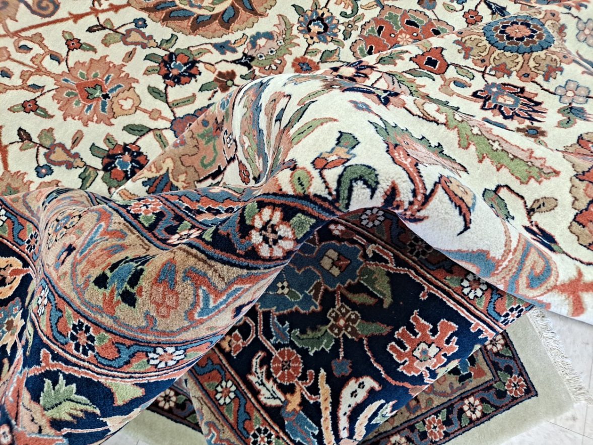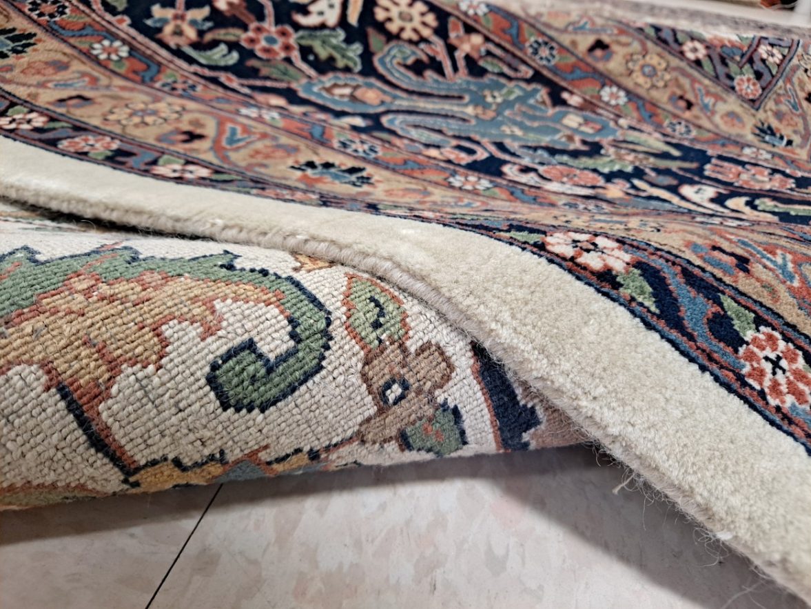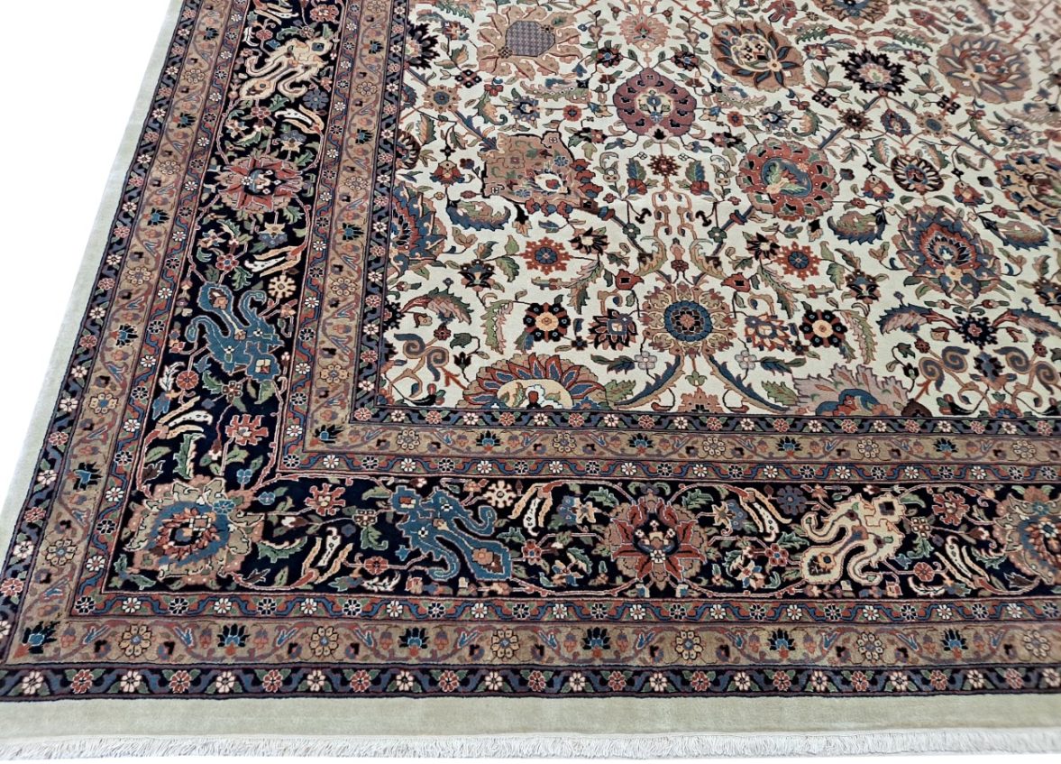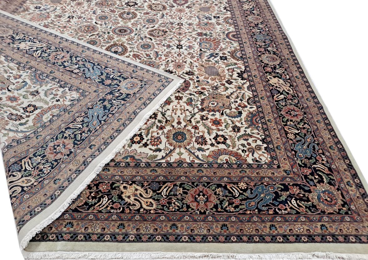 12’1” x 15’1” Indo Kashan 3021 – 105923 Rug#:105923Size:12’1” x 15’1”Design: KashanDesign#:3021Field Color:IvoryBorder Color:NavyContent:100% Wool PileOrigin: IndiaSize Category:12×15 – 12 x 15 Rugs category Traditional Collection tag 12x15 oversized rugsOversized rugs date June 7, 2024