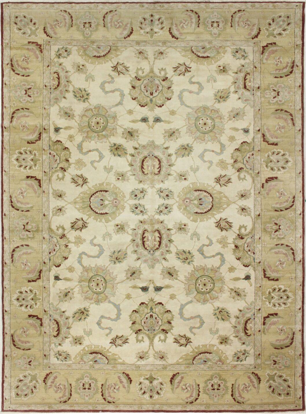 12’3” x 8’11” Agra – 107037 Rug#:107037Size:8’11” x 12’3”Design: AgraDesign#:Color: Ivory / GoldContent:100% Wool PileOrigin:Â EgyptSize Category:9×12 category Traditional Collection date November 3, 2022