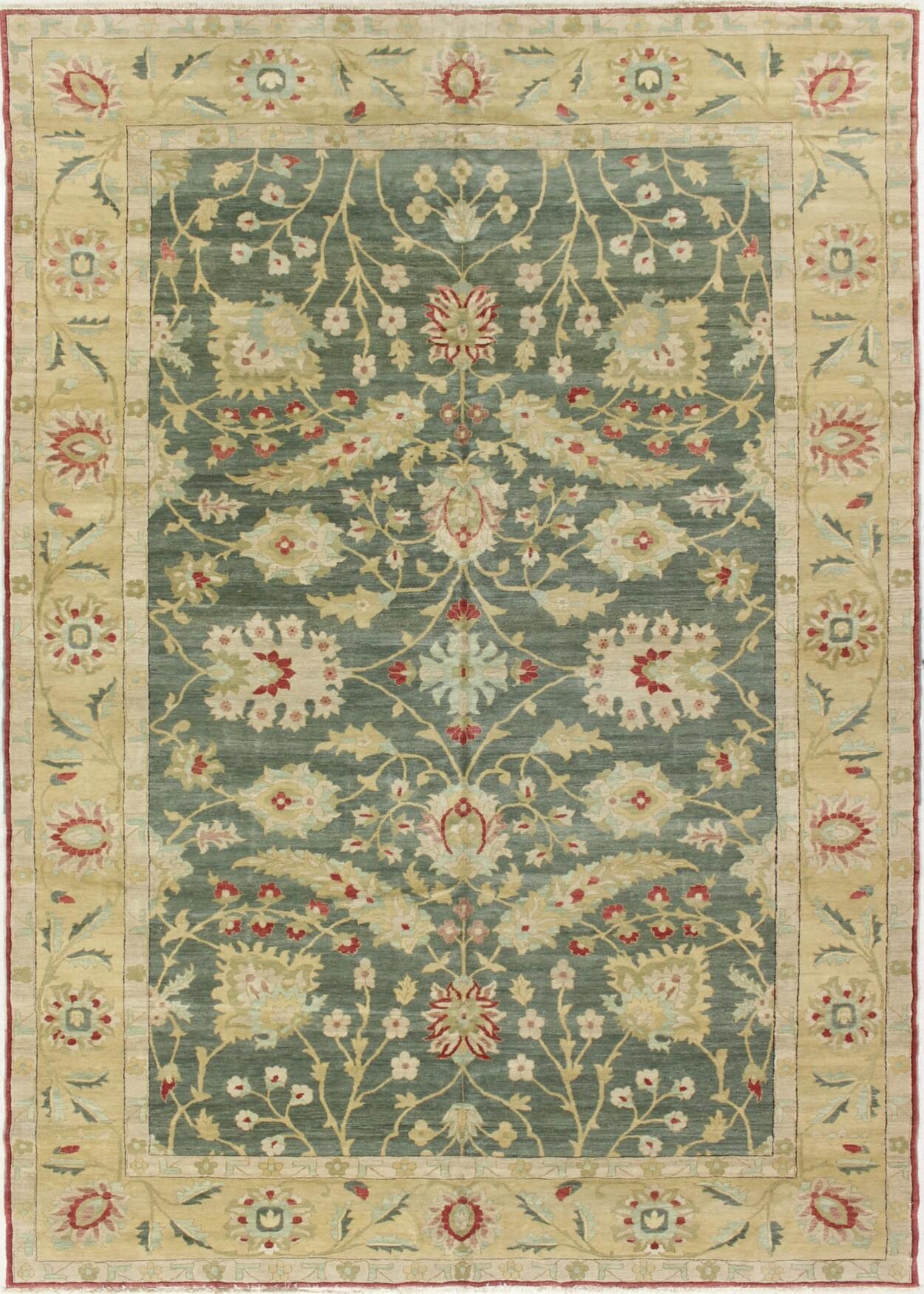 13’1” x 9’3” Agra – 101652 Rug#:101652Size:9’3” x 13’1”Design: Agra Design#:Color: Green / GoldContent:100% Wool PileOrigin:Â EgyptSize Category:9×13 category Traditional Collection date November 3, 2022