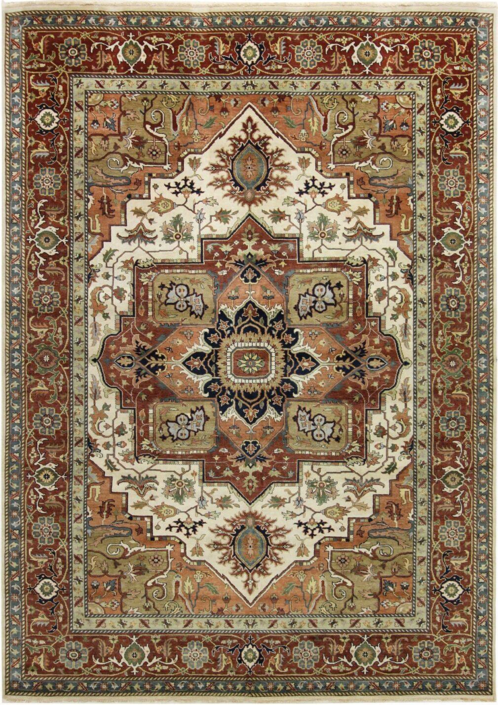 13’10” x 9’9” Heriz 101 – 122972 Rug#:112972Size:9’9” x 13’10”Design: HerizDesign#:101Color: Ivory / RustContent:100% Wool PileOrigin: IndiaSize Category:10×14 category Traditional Collection date November 3, 2022