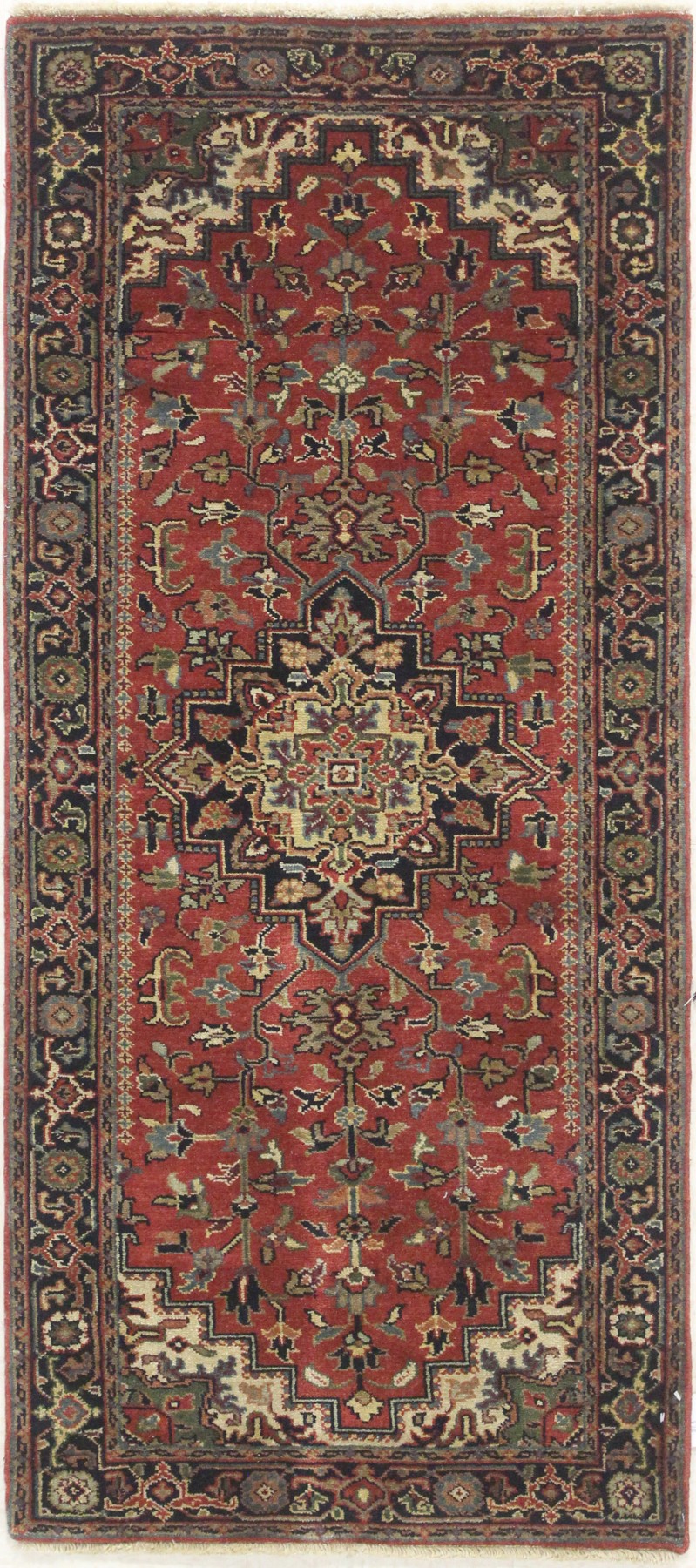 2’7” x 5’9” Indo Runner Heriz 948 – 115796 Rug#:115796Size:2’7” x 5’9”Design: HerizDesign#: 948Field Color: RedBorder Color:NavyContent:100% Wool PileOrigin: IndiaSize Category:3×6 – 3 x 6 Runner Rugs category Traditional Collection tag 3 feet wide runner rugsRunner Rugs date February 15, 2024