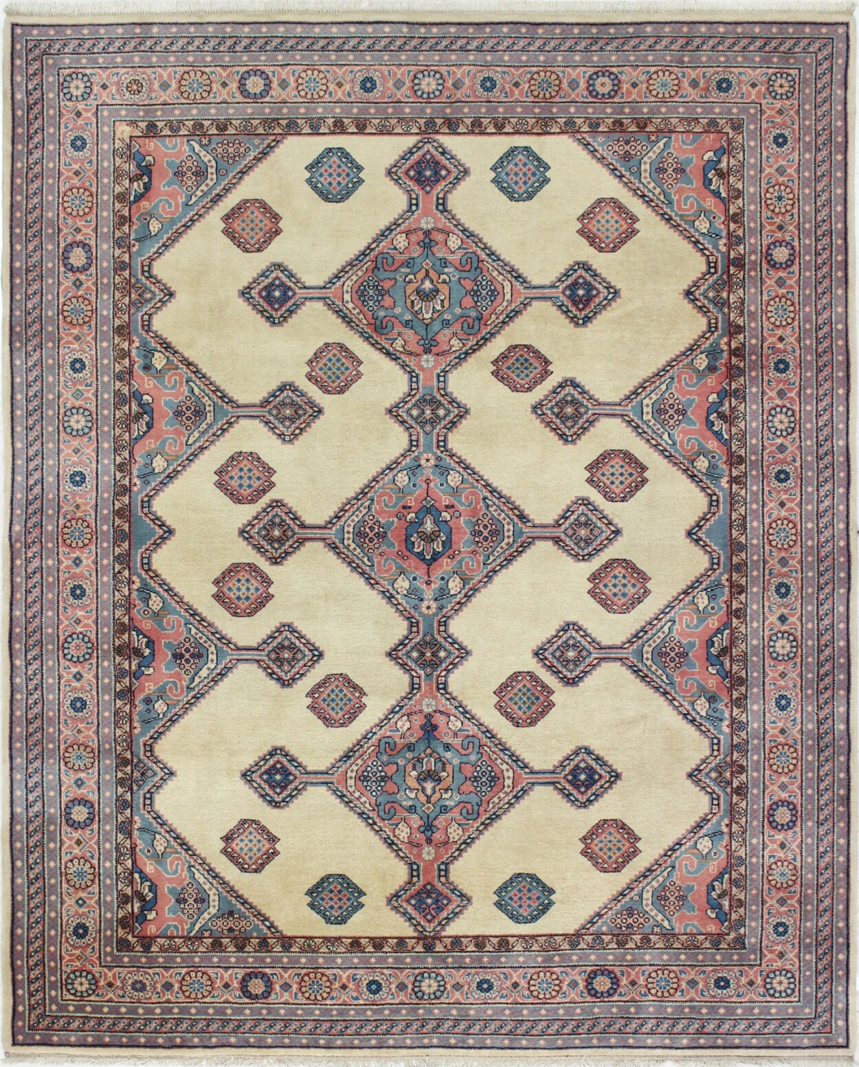 10′ X 8’1” Ghashghai 6008 – 56243 Rug#:56243Size:8’1” X 10′Design: GhashghaiDesign#: 6008Color:Ivory / RoseContent:100% Wool PileOrigin: Romania category Traditional Collection date October 21, 2022