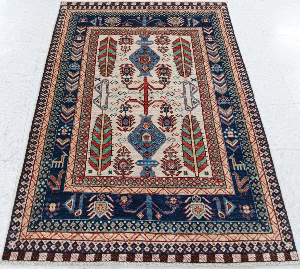 4’2” x 6’1” Pakistan Kerman – 123401 Rug#:123401Size:4’2” x 6’1”Design: KermanDesign#: PakistaniField Color: IvoryBorder Color:NavyContent:100% Wool PileOrigin: PakistanSize Category:4×6 4 x 6 rugs category Traditional Collection tag 4x6 rugs date October 19, 2023