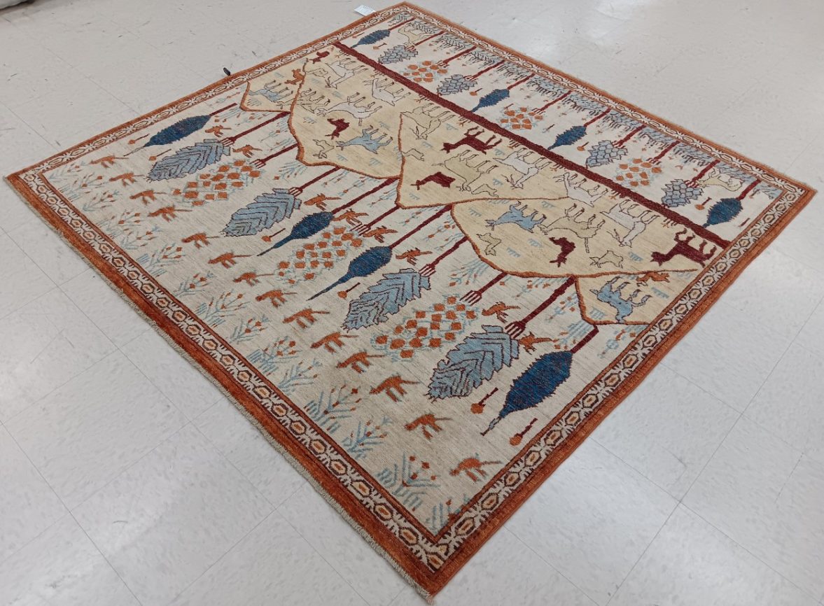 5’10” x 6′ Square Pakistan Gabeeh – 123398 Rug#:123398Size:5’10” x 6′Design: GabbehDesign#: PakistaniField Color: IvoryBorder Color:MultiContent:100% Wool PileOrigin: PakistanSize Category:6×6 6 x 6 rugs category Traditional Collection tag 6x6 square rugssquare rugs date October 19, 2023