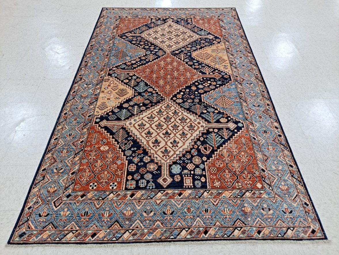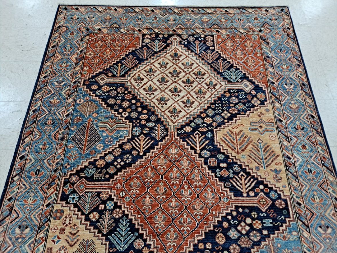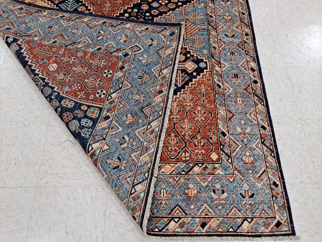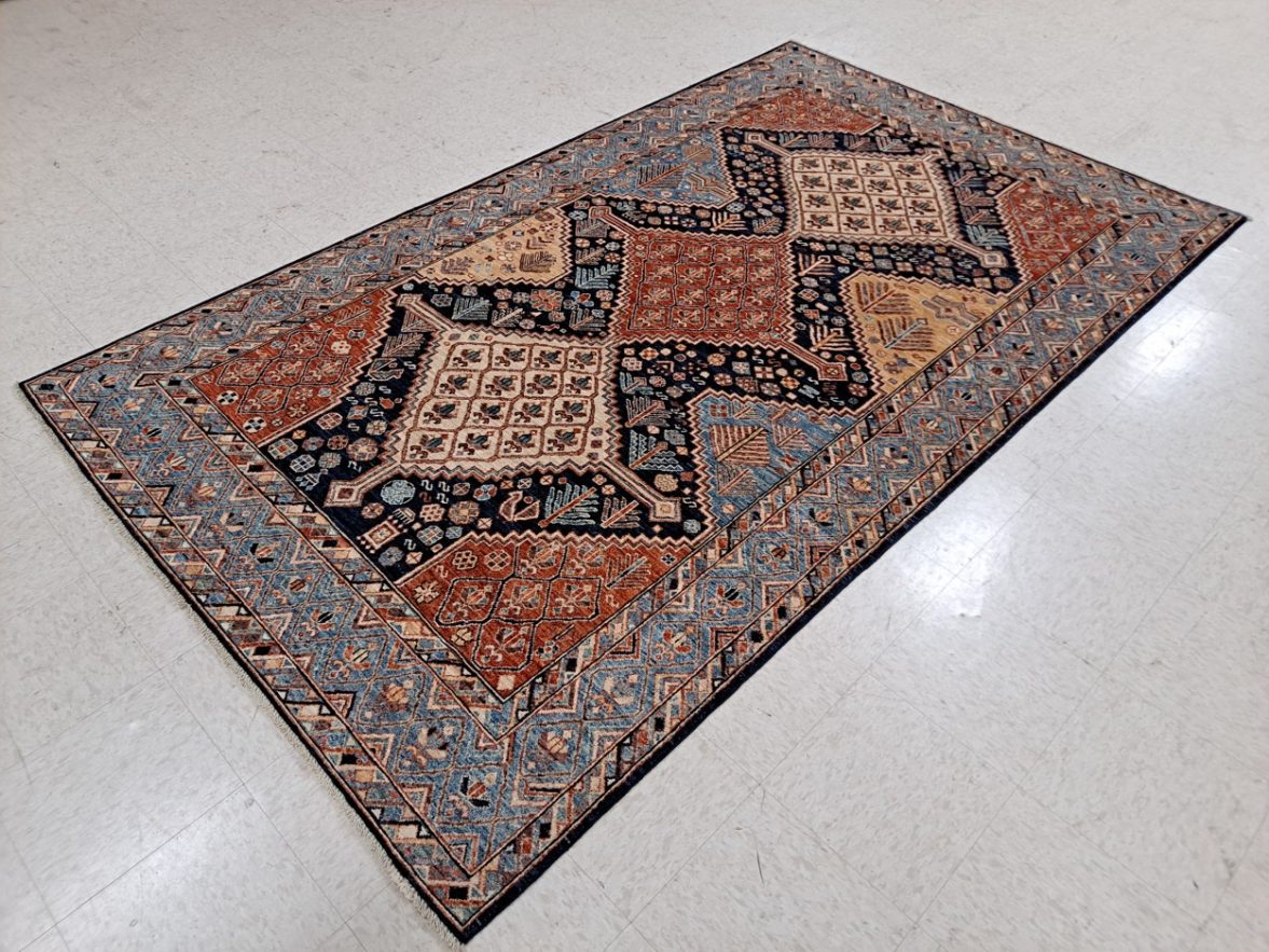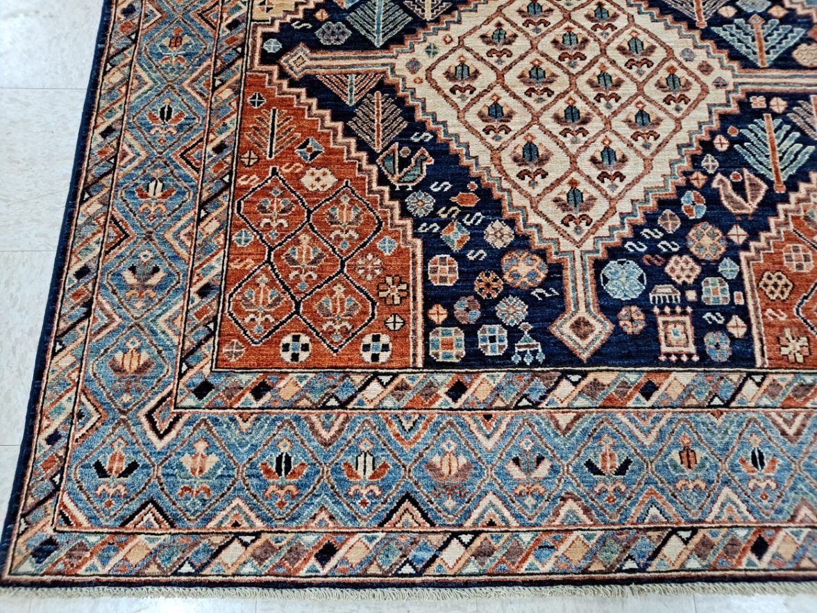 5’8” x 9’4” Pakistan Ghashghai = 122151 Rug#:122151Size:5’8” x 9’4”Design: GhashghaiDesign#: PakistaniField Color: NavyBorder Color:Light BlueContent:100% Wool PileOrigin: PakistanSize Category:6×10 – 6 x 10 Rugs category Traditional Collection tag 10 feet runner6x8 rugs9x6 rugsRunner Rugs date January 22, 2024