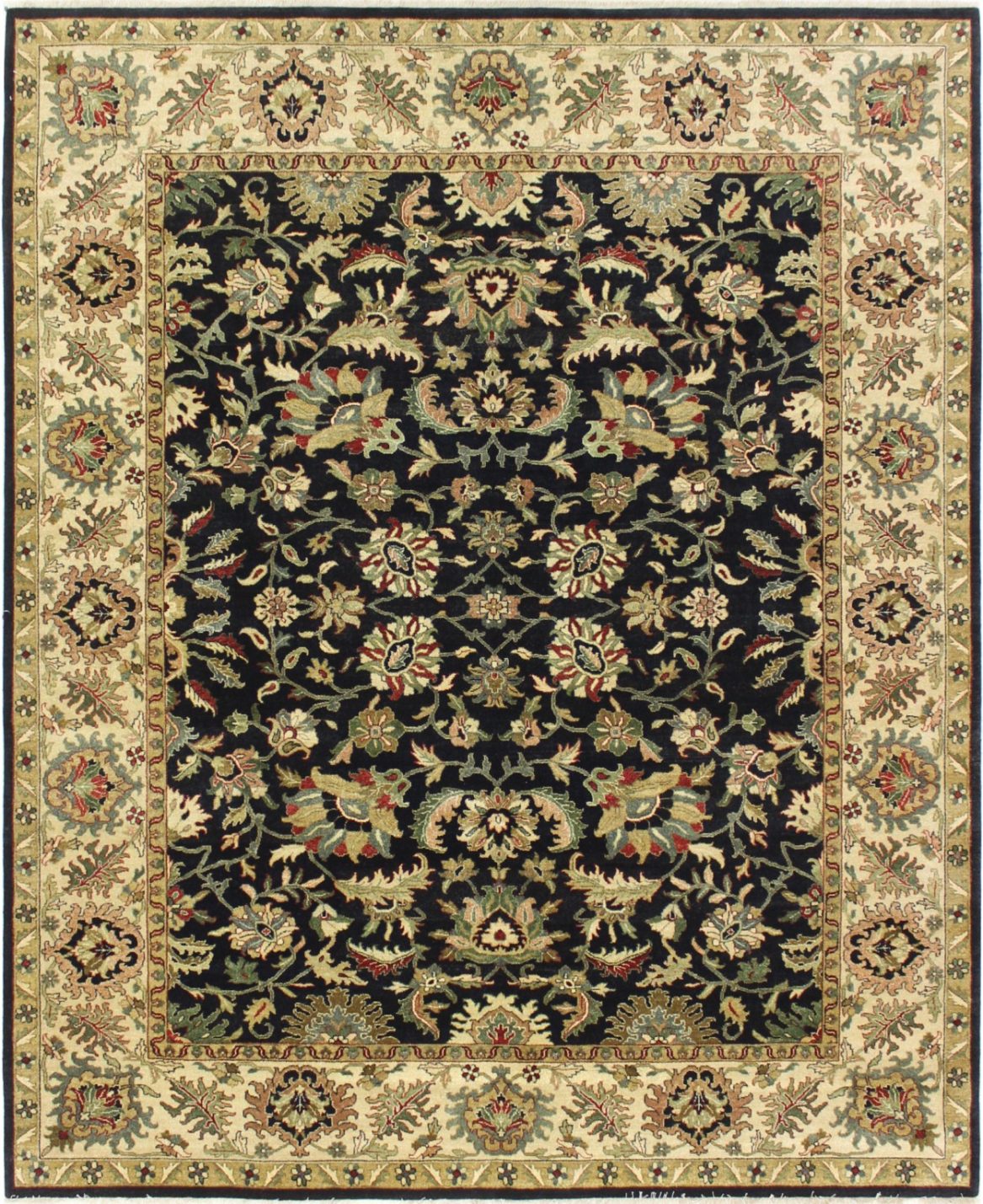 8′ x 9’11” Ziegler MD5 – 114830 Rug#:114830Size:8′ x 9’11”Design: ZieglerDesign#: MD-5Field Color: NavyBorder Color:IvoryContent:100% Wool PileOrigin: IndiaSize Category:8 x 10 rugs category Traditional Collection date June 28, 2023