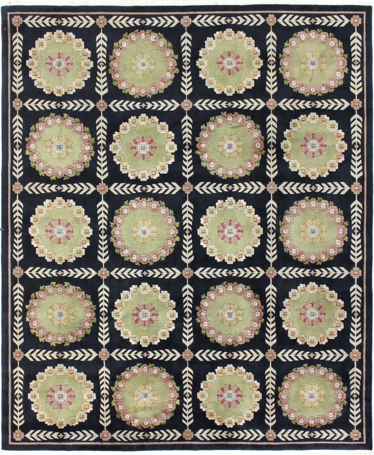 8’1” x 9’9” Indo Bookey – 101069 Rug#:101069Size:8’1” x 9’9”Design: BookeyDesign#: IndianField Color: BlackBorder Color:Green FlowersContent:100% Wool PileOrigin: PakistanSize Category:6×8 – 6 x 8 Rugs category Traditional Collection tag 8x10 rugs date March 26, 2024