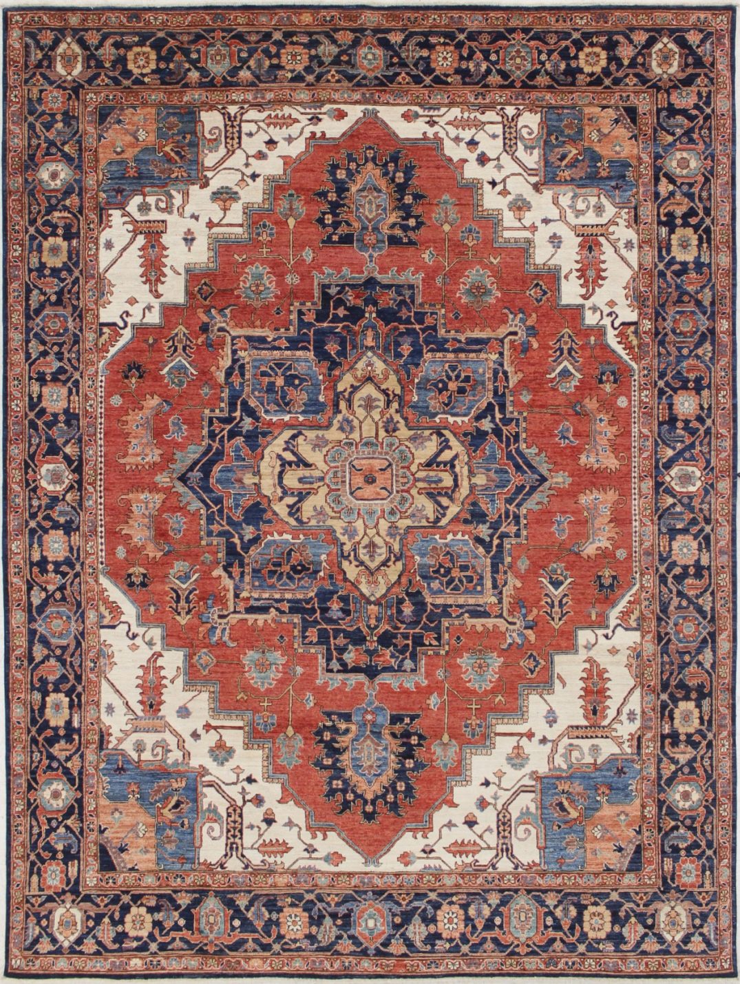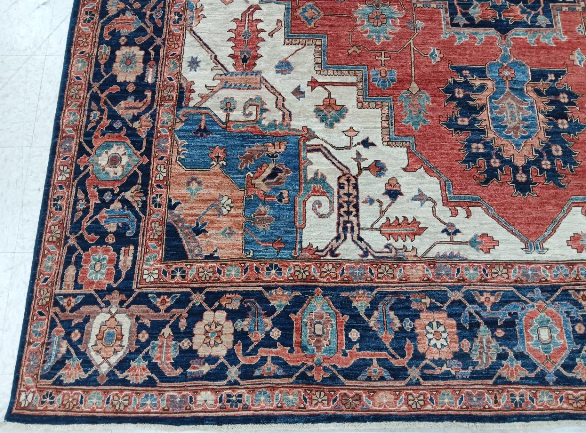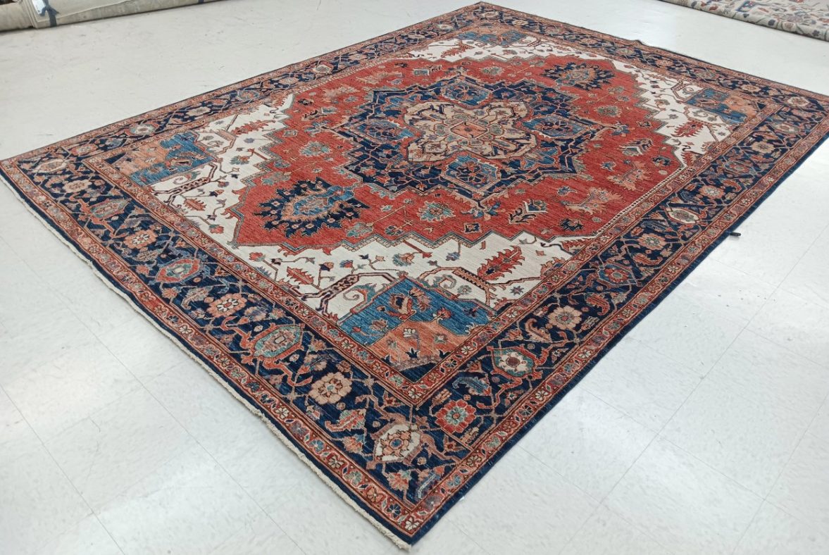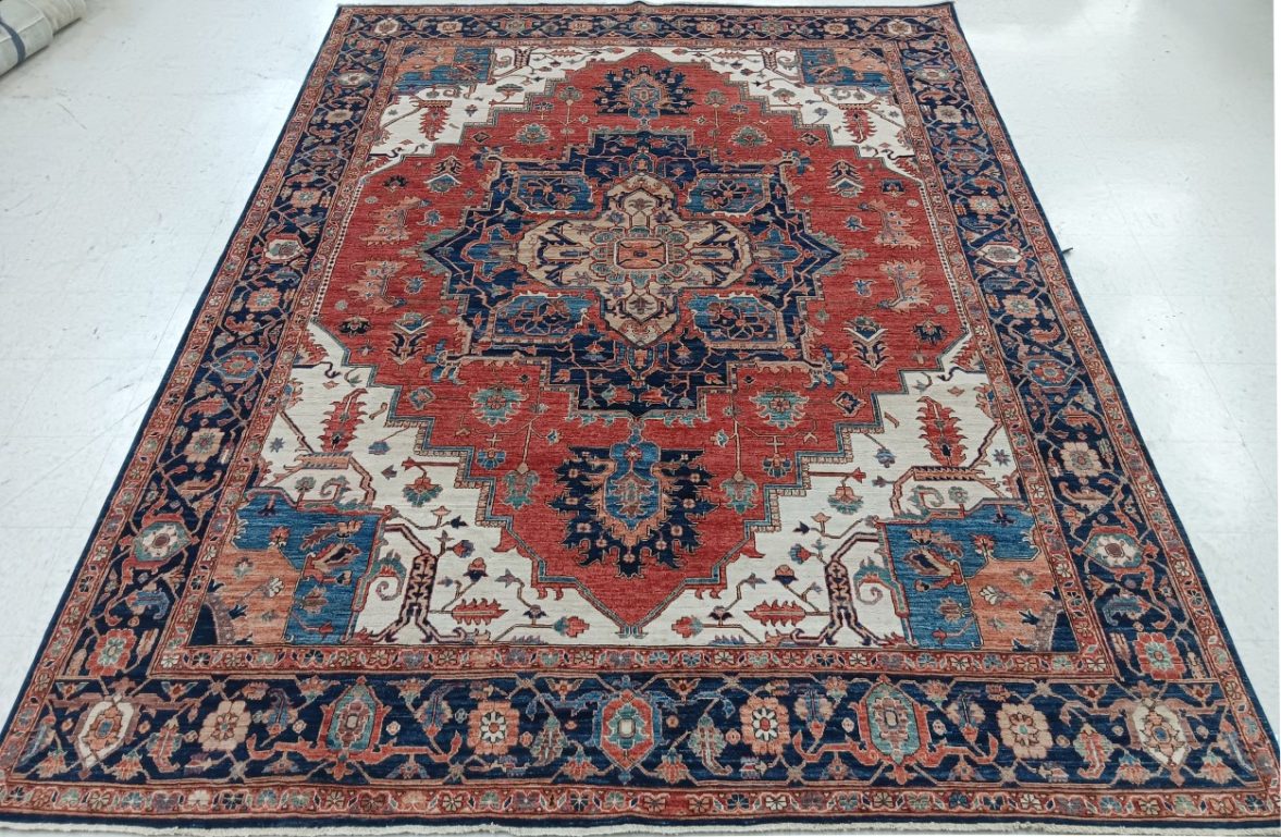 8’11” x 11’11” Pakistan Heriz – 123450 Rug#:123450Size:8’11” x 11’11”Design: HerizDesign#: PakistaniField Color: RustBorder Color:NavyContent:100% Wool PileOrigin: PakistanSize Category:9×12 – 9 x 12 rugs category Traditional Collection tag 9x12 rugs date October 27, 2023