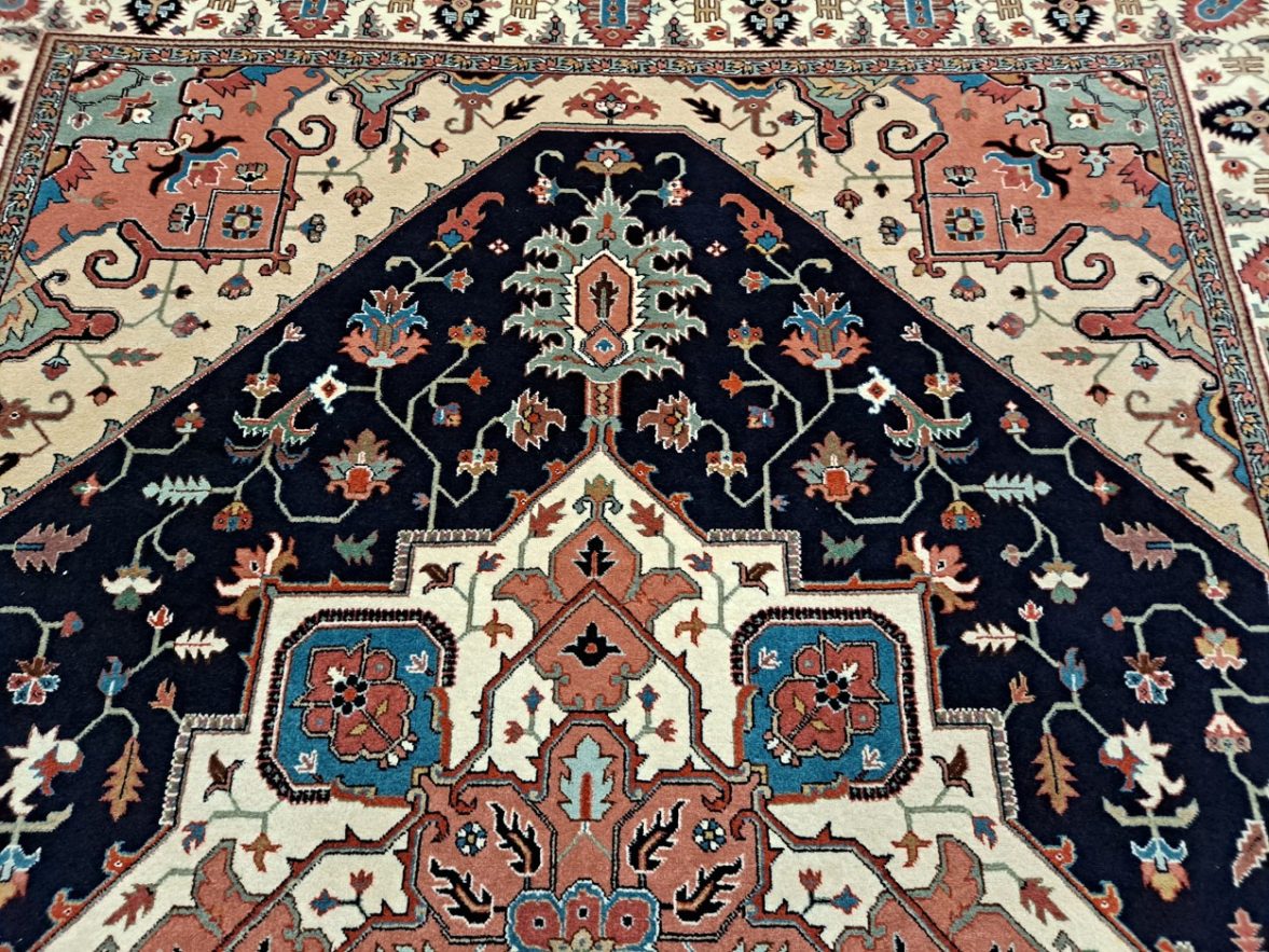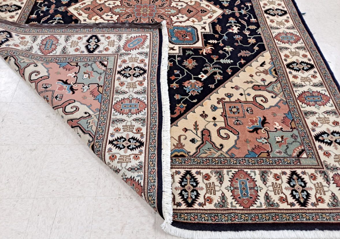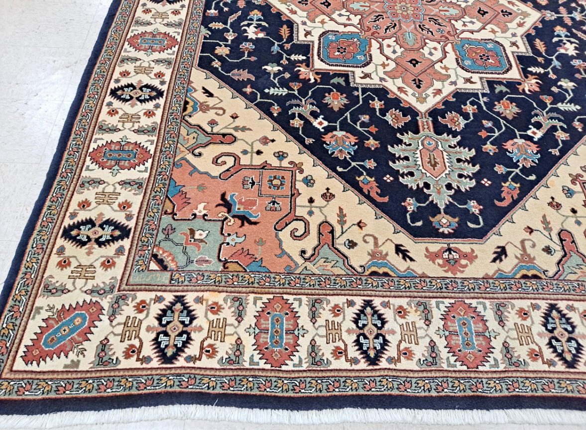 9′ x 11’7” Persian Heriz – 113908 Rug#:113908Size:9′ x 11’7”Design: HerizDesign#:PrsField Color:NavyBorder Color:IvoryContent:100% Wool PileOrigin:PersiaSize Category:9×12 – 9 x 12 Rugs category Traditional Collection tag 9x12 rugs date August 21, 2024