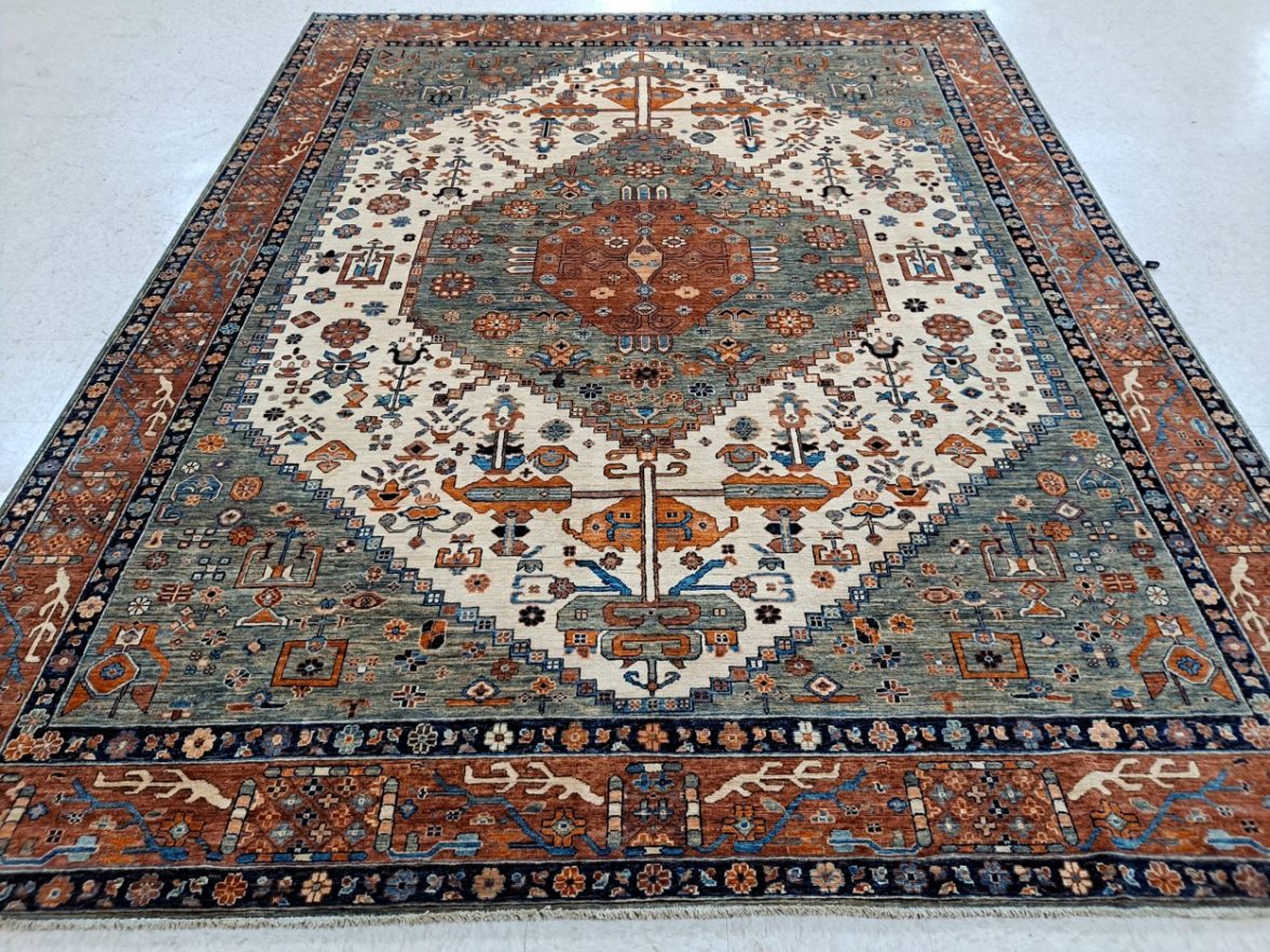9’1” x 11’7” Pakistan Heriz – 122142 Rug#:122142Size:9’1” x 11’7”Design: HerizDesign#: PakistaniField Color: IvoryBorder Color:RustContent:100% Wool PileOrigin: PakistanSize Category:9×12 – 9 x 12 Rugs category Traditional Collection tag 9x12 rugs date January 31, 2024