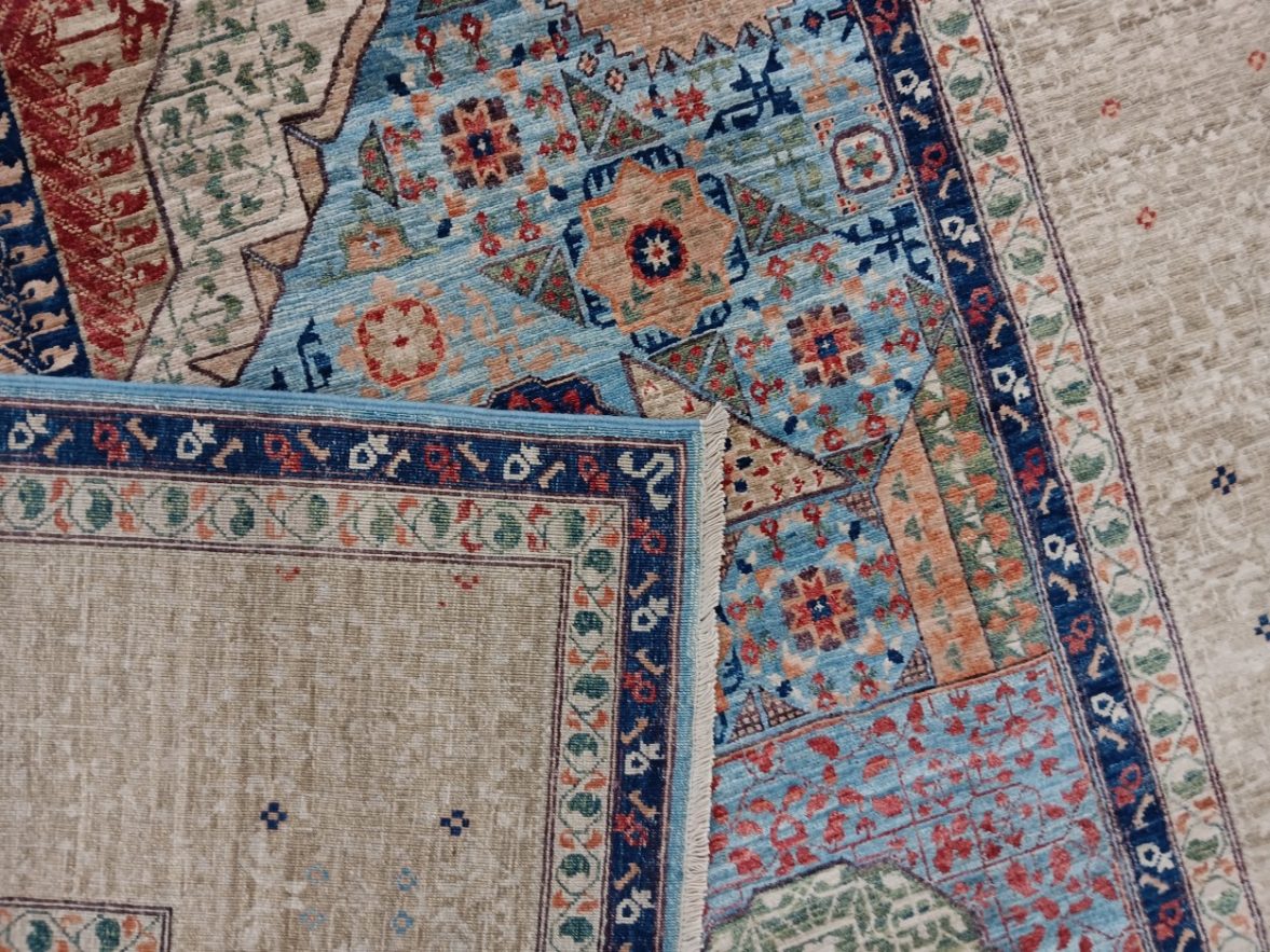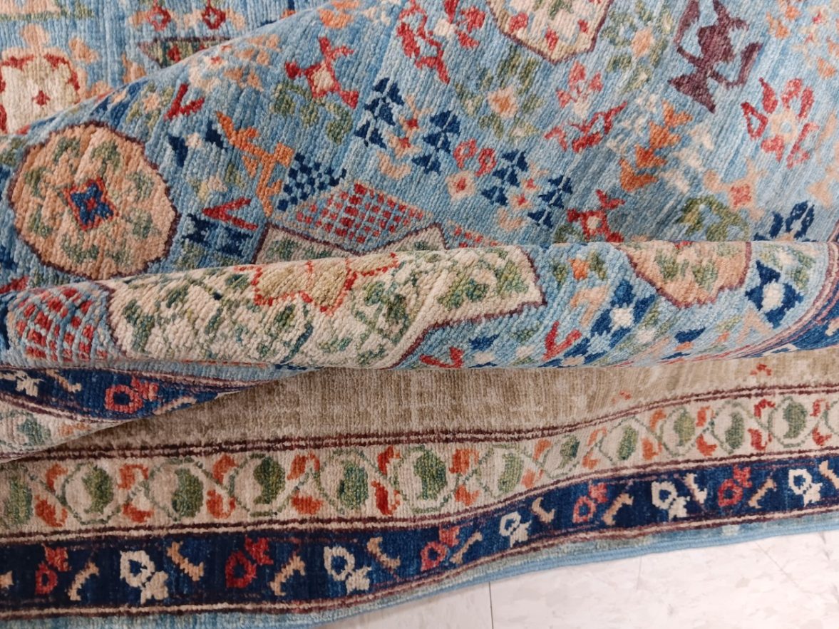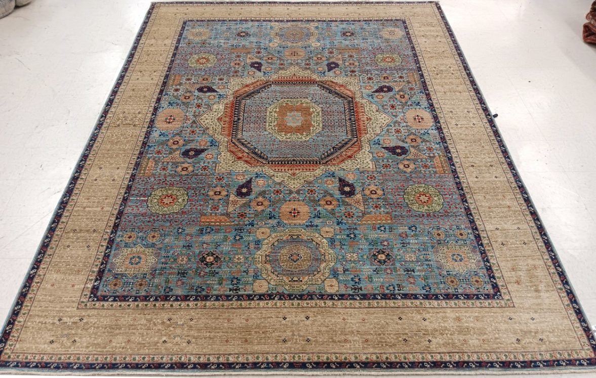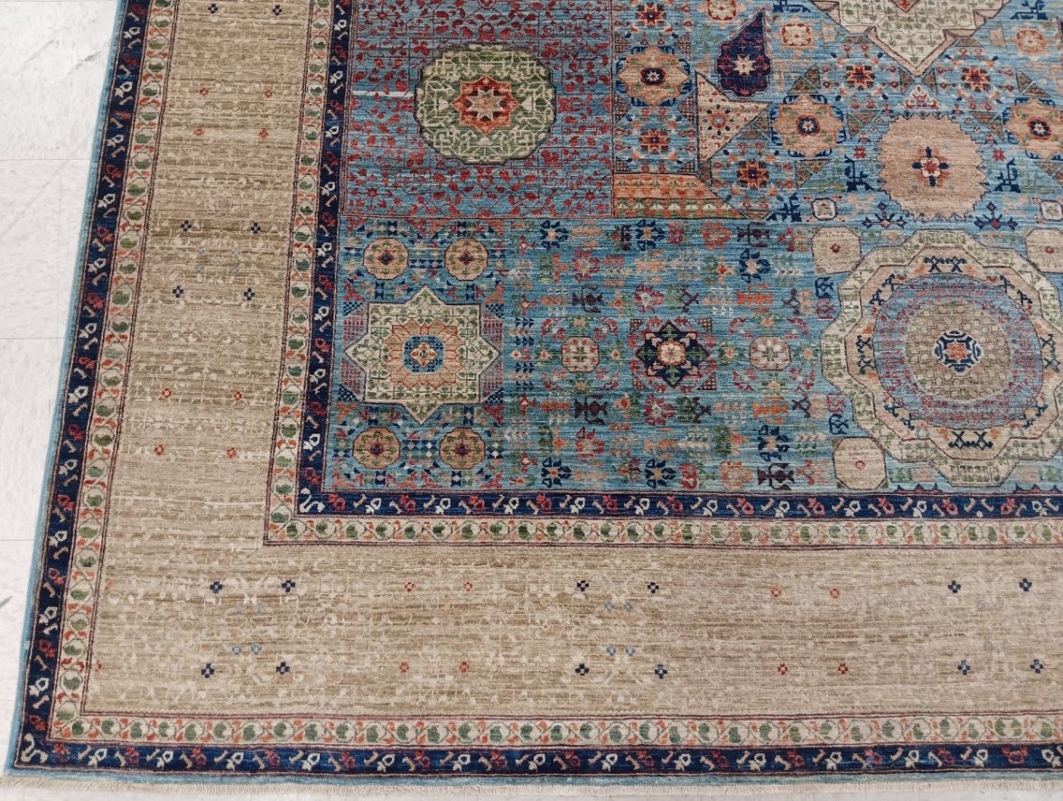9’1” x 12’2” Pakistan Mamluk 123424 Rug#:123424Size:9’1” x 12’2”Design: Mamluk Design#: PakiField Color: Light BlueBorder Color:IvoryContent:100% Wool PileOrigin: PakistanSize Category:9×12 rugs category Traditional Collection tag 9x12 rugs date October 18, 2023