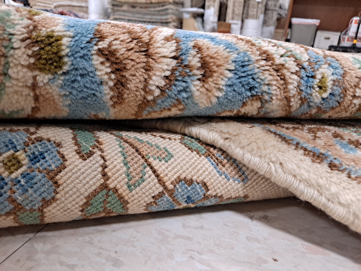 9’1” x 12’4” Persian Kerman – 1038 Rug#:1038Size:9’1” x 12’4”Design: KermanDesign#: PersianField Color: IvoryBorder Color:Light BlueContent:100% Wool PileOrigin: PersiaSize Category:9×12 – 9 x 12 Rugs category Traditional Collection tag 9x12 rugs9x13 10x13 9 x 13 10 x 13 rugs date February 26, 2024