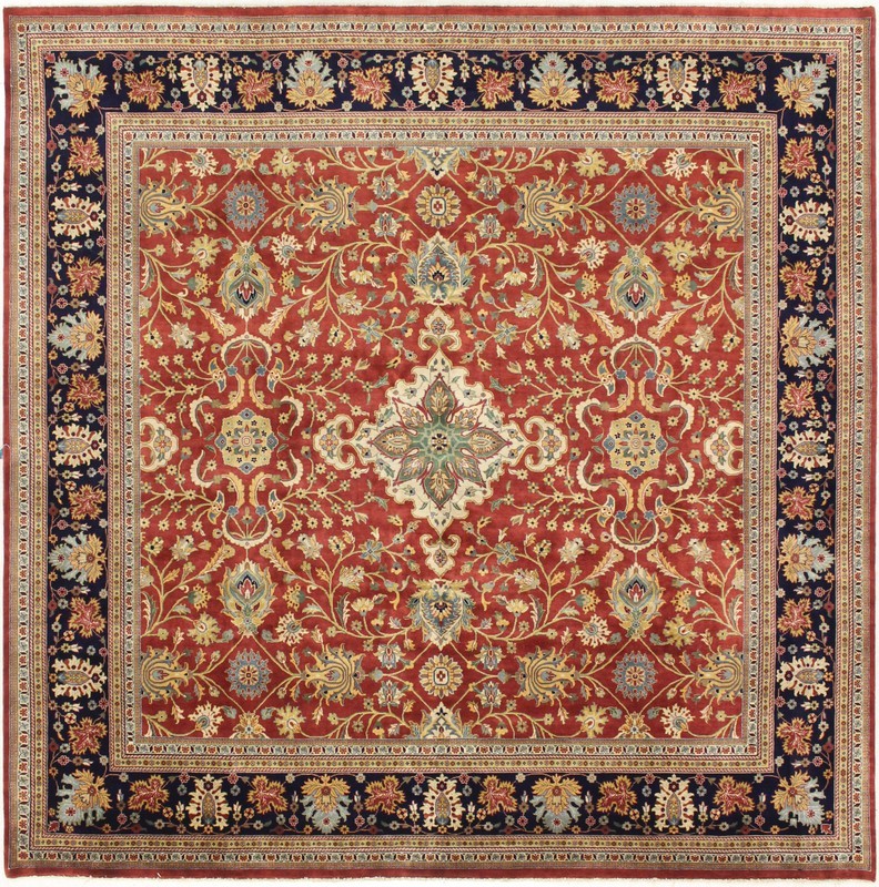 9’10” x 9’10” Tabriz 32 – 115086 Rug#:115086Size:9’10” x 9’10”Design: TabrizDesign#: 32Color: Rust / NavyContent:100% Wool PileOrigin: IndiaSize Category:10×10 square category Traditional Collection date January 18, 2023